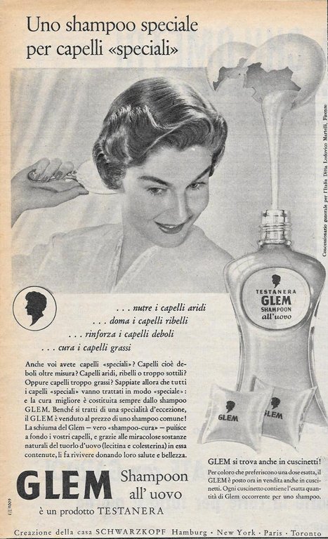 Glem Shampoo all'uovo è un prodotto Testanera.. Advertising 1956