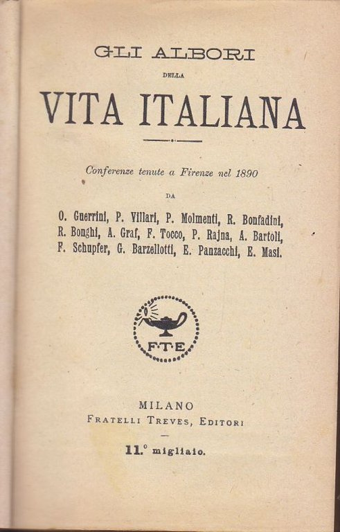 GLI ALBORI DELLA VITA ITALIANA Conferenze tenute a Firenze 1890 Treves Libro