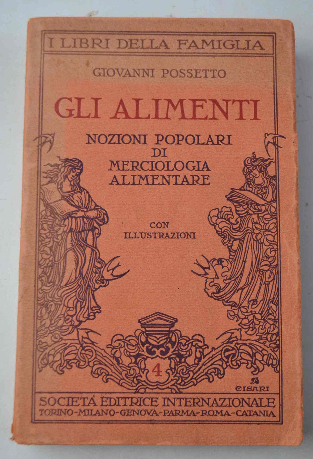 Cm. 19, pp. xvi, 596. Con 8 belle tavole a colori f.t. raffiguranti specie di funghi velenosi. Bross. orig. illustrata da Cisari. Ottima copia, a fogli chiusi. Origine, storia, caratteri, proprietà, composizione, valore nutritivo e alimentare, alterazioni, sofisticazioni ed esame degli alimenti.