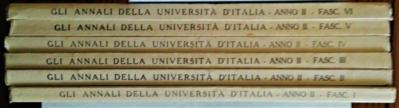 Gli Annali della Università d' Italia. Rivista bimestrale dell' istruzione superiore pubblicata a cura del Ministero dell'Educazione Nazionale. Direttore Giuseppe Giustini. Anno II, N. I - Anno II N. VI.