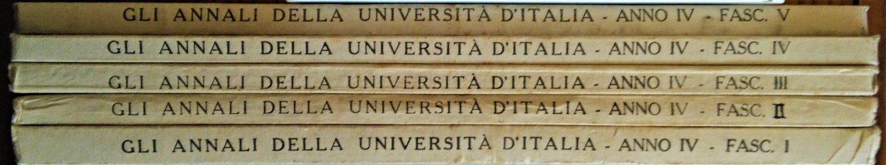 Gli Annali della Università d' Italia. Rivista bimestrale dell' istruzione superiore pubblicata a cura del Ministero dell'Educazione Nazionale. Direttore Giuseppe Giustini. Anno IV, N. I - Anno IV N. V.