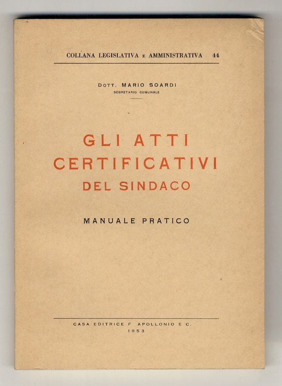 S.l., Casa Editrice Apollonio, 1953, in-8, br. editoriale, pp. 218.