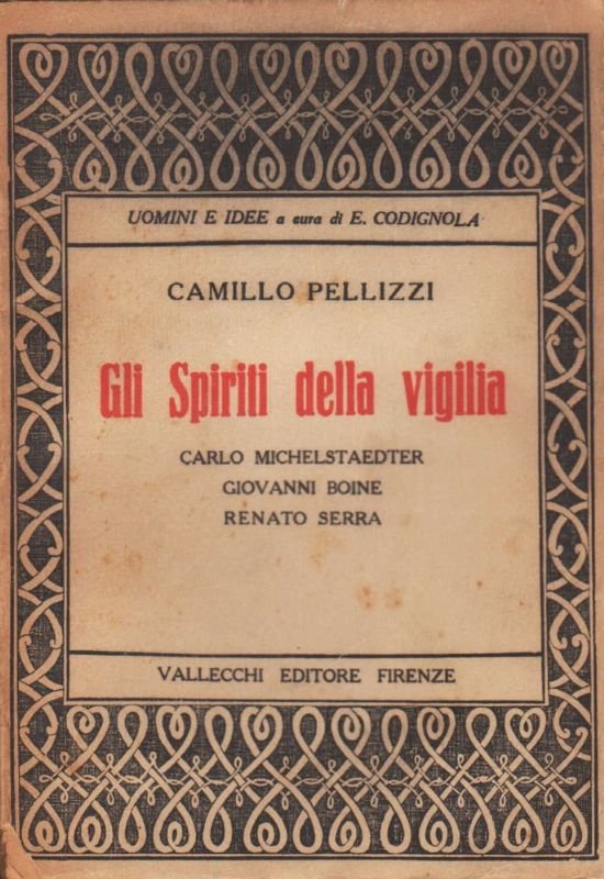 In-8°, legatura editoriale in brossura, con titoli in rosso e nero e fregio tipografico al piatto anteriore; pp. 221(3) e (8) di catalogo editoriale. Primo lavoro critico di rilievo su Michelstaedter. Raro. Camillo PELLIZZI (Collegno, 1896 - Firenze, 1979) è stato saggista, sociologo e politologo italiano. Fu un importante intellettuale del Novecento, prima, durante e dopo il fascismo.