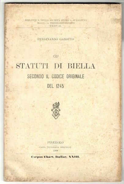 Gli statuti di Biella secondo il codice originale del 1245 | Libri antichi e moderni | Gabotto, Ferdinando