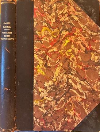 A cura di Giuseppe M. Sibille. In 8° (cm 22,8 x 15,7), pp. 372. Leg. mezza pelle con angoli marrone, piatti cart. marmorizzati. Tit. oro al dorso. Segni di consunzione, strappi ai margini e alle cuffie. Fioriture ai tagli. Tagli e pagine bruniti. Rare gore. Buone condizioni.