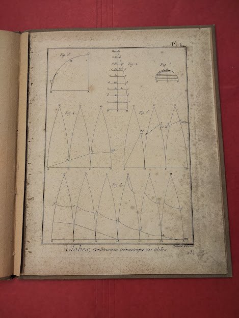 Cartella in cart. muta di cm 28,5 x 23 ca., contenente 2 inc.1) Construction geometrique des globes. 2) Construction mecanique des globes.