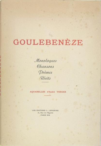 Les éditions L. Lefebvre, Paris, 1947. In-4 en feuilles sous couverture rempliée et imprimée, illustrations : aquarelles de André Verger, 136 pages. Exemplaire N° 294 sur offset des Papeteries de Pont-Ste-Maxence, Couverture avec des rousseurs, sinon, bon état. Textes en français et en patois saintongeais. Marc-henri-Evariste Poitevin dit Goulebenèze (1877-1952).