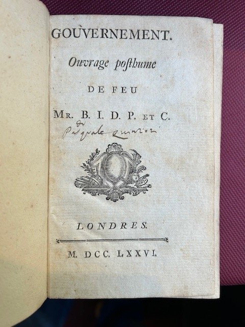 Gouvernement. Ouvrage posthume de feu Mr. B.I.D.P. et C