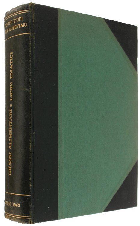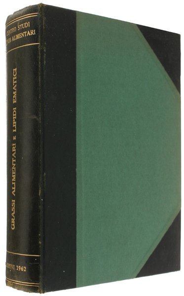 (Codice GA/1269) In 8° XXIV-926 pp. Atti del 3° Convegno Internazionale dei Lipidi Alimentari e del Simposio sulla genuinità degli Oli per l'alimentazione (Rimini, 21-23 settembre 1962). Varie figure e tabelle, 10 tavole ripiegate. Dedica autografa del curatore.Grande volume, elegante legatura mezza pelle verde con angoli, titolo oro, risguardi marmorizzati, tagli colorati, nastrino. Ottimo esemplare. ~~~ SPEDIZIONE IN ITALIA SEMPRE TRACCIATA