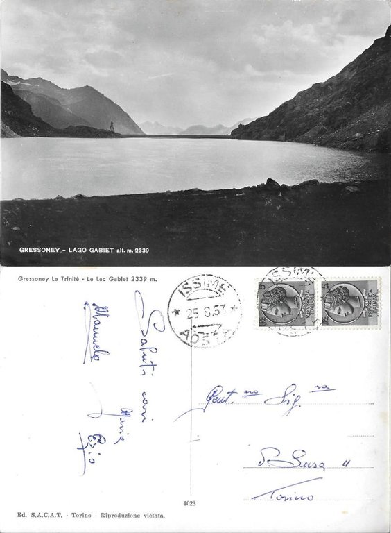 Gressoney. Lago Gabiet. Viaggiata 1953