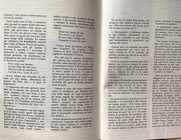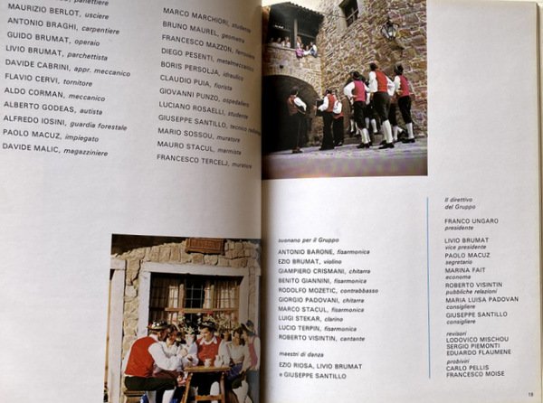 Soggetti: Folclore, Gorizia, Danza popolare, Cultura locale, Tradizioni locali, Anni Settanta, Libri Vintage Fuori catalogo, Libri illustrati, Foto d'epoca, Danze, Balli, Folklore, Comunità, Gruppi, Società, Costume, Lifestyle, Studi goriziani, Carinzia, Balli pubblici, Friuli Venezia Giulia, Rievocazione storica, Memoria, Amori, Matrimonio, Nozze, Agricoltori, Pastori, Goriziani, Isonzo, Friulanità, Ricorrenze, Feste, Celebrazioni di grupo, Gruppo folcloristico, Città, Confine, Borgo Castello, Lis Luzignutis, Danzerini di Lucinico, Capriva, Tocai, Mestieri, Arti performative, Performance, Musica, Strumenti, Fisarmonica, Violino, Vita quotidiana, Feste in costume, Famiglie, Donne, Sponsali, Riti, Rituali, Sdrondenada, Chiarivari, Donzellona, Talamo nuziale, Canzoni, Lingua, Dialetto friulano, Sposo, Suocera, Materàn, San Jacun, Vino, Majolsizza, Ruta, Velo, Comparis di anel, Vestiti, Gastronomia, Cibo, Fertilità, Collezionismo, Canti popolari, Repertorio, Villotte, PERAULIS E SUNADIS GURIZANIS, LIBRUT DAI SPARTITS DAI BAI, Torototele, Roseana, Valsovien, Fugarul, Musicanti del Collio, Stajere, BAL DAI CONTADINS, Corteggiamento, Società, Trasferte, Anniversari, Maridale di vendemis, Viaggio, Collezionismo, Folklore, Gorizia, Folk dance, Local culture, Local traditions, Seventies, Out of print books, Illustrated books, Vintage photos, Dances, Dances, Community, Groups, Society, Costume, Cultural studies, Carinthia, Public dances, Historical reenactment, Memory, Love, Marriage, Wedding, Farmers, Shepherds, Friulanity, Occasions, Parties, Group celebrations, Folklore group, City, Border, Dancers, Professions, Performing arts, Performance, Music, Instruments, Accordion, Violin, Daily life, Costume parties, Families, Women, Weddings, Rites, Rituals, Maiden, Wedding thalamus, Songs, Language, Friulian dialect, Groom, Mother-in-law, Veil, Comparis di anel, Clothes, Gastronomy, Food, Fertility, Collectibles, Folk songs, Repertoire, Musicians, Courtship, Society, Travel, Anniversaries, Travel, Collecting, Italy, Voyage