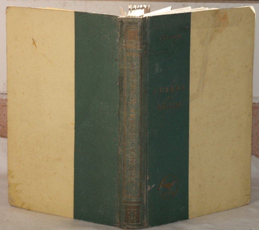 In 8. Dim. 19x13 cm. Pp. 322. Interessante opera completa in un volume sui bacilli e gli esperimenti scientifici correlati del tempo. L'autore Venzmer tratta delle principali malattie infettive, le cause, i batteri, le epidemie dovute alla miseria e la sporcizia, le malattie più comuni nei bambini. Interessante il capitolo sulla ricerca del batterio del cancro. All'interno sono presenti 20 planches fuori testo che mostrano scienziati famosi (Van Leeuwenhoek , Spallanzani , Agostino Bassi , Robert Koch , Emilio Von Behring ) ed esperimenti in laboratorio. Firma di appartenenza alla prima pagina di sguardia. In discrete condizioni generali. Copertina rigida editoriale in discrete condizioni generali con lievi usure ai margini e dorso. Legatura in discrete condizioni con qualche lieve rottura. All'interno le pagine si presentano in buone condizioni con fioriture. Interesting complete work in one volume about bacteria and experiments of that time. The author Venzmer talks about the main infectous deseases, the causes, bacteria, plugs due to poorness and dirt, the most common deseases in children. Very interesting chapter about the research of the cancer bacteria. Inside there are 20 out-of-the-text planches showing famous scientists (Van Leeuwenhoek , Spallanzani , Agostino Bassi , Robert Koch , Emilio Von Behring ) and experiments in labs. Signatura in the first endpaper. In fair general conditions. Hard editorial cover in fair general conditions slightly worn in the edges and spine. Binding in fair conditions with some slight crack. Inside pages are in good conditions with foxings.