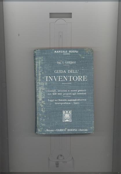 IN 16°,pp.IX+511+53 CON L'ELENCO COMPLETO DEI MANUALI HOEPLI+INDICE ALFABETICO<BR>PER AUTORE.COPERTINA EDITORIALE IN TUTTA TELA VERDE CON TITOLO AL DORSO E<BR>SUL PRIMO PIATTO. TAGLI ROSSI. CONTIENE:CONSIGLI,ISTRUZIONI E NORME GENERALI CON 830 TEMI PROPOSTI AGLI INVENTORI. PRIMA EDIZIONE. OTTIMA CONSERVAZIONE.