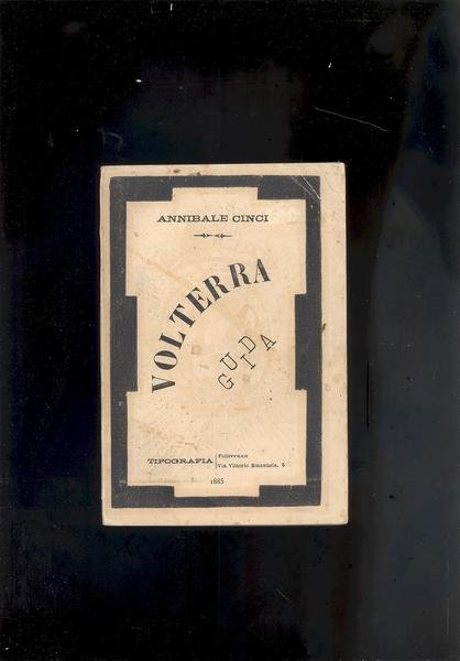 IN 16, pp.XXVII, 210, COPERTINA EDITORIALE CON TITOLO ENTRO CORNICE NERA, NELLA<BR>SECONDA DI COPERTINA ILLUSTRAZIONE DELLA PORTA DELL'ARCO. PIANTA DI VOLTERRA NELLA CINTA ETRUSCA + v.r.IN ANTIPORTA E, PIANTA DI VOLTERRA NELLA CINTA MEDIOEVALE + v.r.f.t. OPERA DIVISA IN TRE PARTI : PARTE 1°, EDIFIZI ETRUSCHI. PARTE 2°.<BR>MUSEO E BIBLIOTECA GUARNACCI. PARTE 3°, ISTITUTI,PIAZZE,VIE E PORTE,CHIESE, EDIFIZI<BR>DIVERSI, FUORI DELLA CITTA', E DEL TERRITORIO. LE ULTIME SEI CARTE ( QUATTRO GIALLE e DUE VERDI ), FUORI NUMERAZIONE, CON PUBBLICITA' DI DITTE LOCALI. MINIME MANCANZE AL DORSO SENZA PERDITA DEL TITOLO, PIEGA IN ALTO ALLA COPERTINA E MINIMO FORO DI TARLO,ALTRIMENTI OTTIMA CONSERVAZIONE. ID 4169