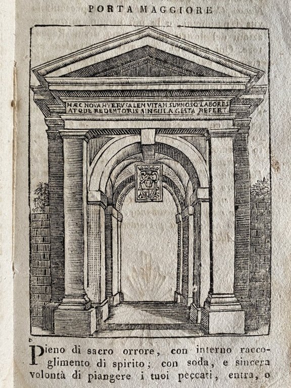 In-8° (cm. 18,9), graziosa legatura coeva in cartonato floreale (minime tracce d'uso); pp. 112 in ottimo stato; con 1 bella tavola in xilografia più volte ripiegata fuori testo (di 3) e numerose illustrazioni sempre xilografiche nel testo, di cui 1 al verso del frontespizio a piena pagina raffigurante S. Bernardino fondatore del santuario di Varallo; lievissime fioriture. Rara ed interessante guida sul Sacro Monte di Varallo, dove si ricreano su piccola scala le atmosfere e i luoghi tipici della Palestina, arricchiti dalle opere di Gaudenzio Ferrari. Esemplare molto buono. (SF1)