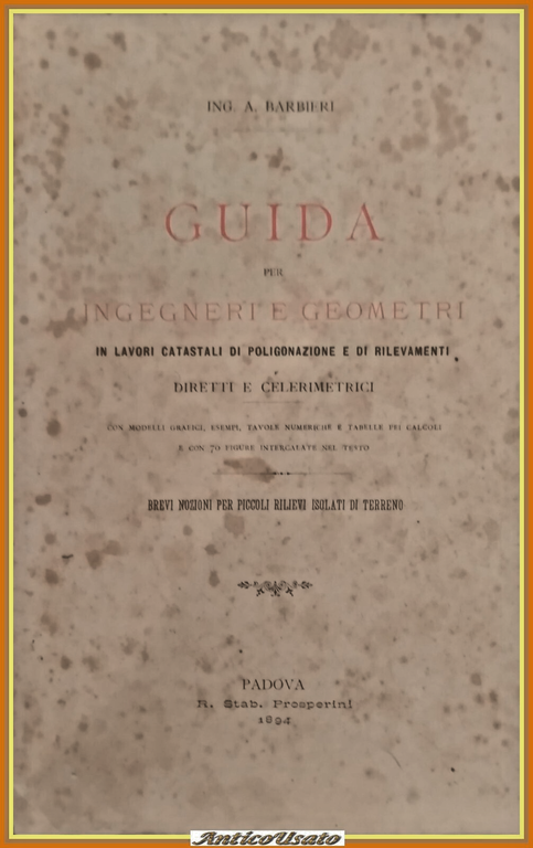 GUIDA PER INGEGNERI E GEOMETRI poligonazione rilevamenti di Barbieri 1894 Libro