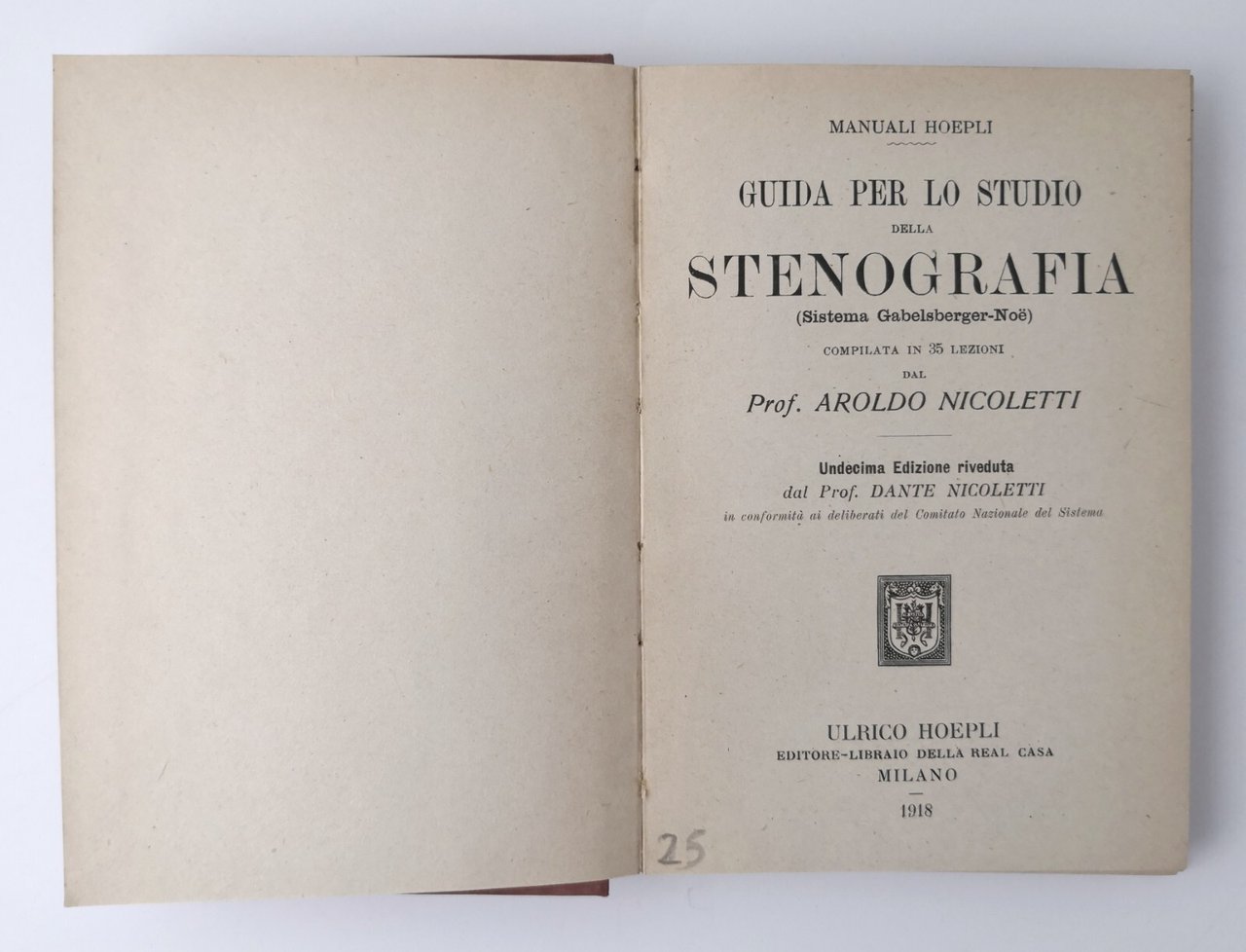 GUIDA PER LO STUDIO DELLA STENOGRAFIA di Aroldo Nicoletti 1918 Hoepli manuale