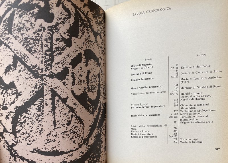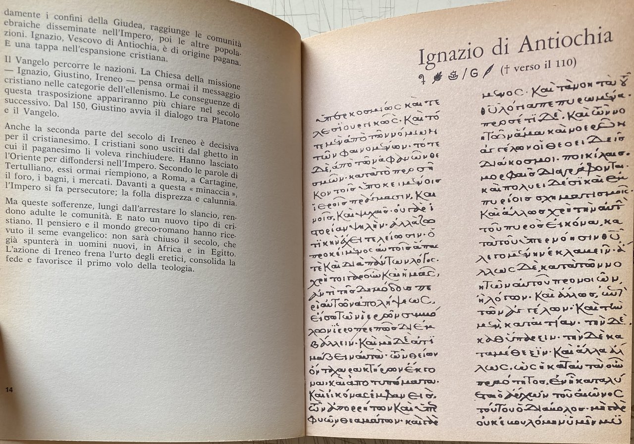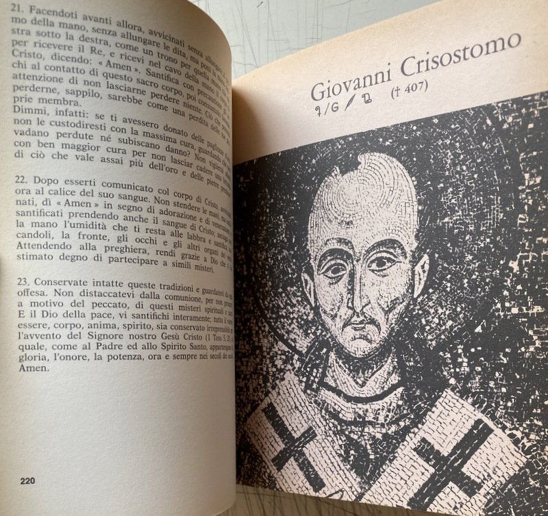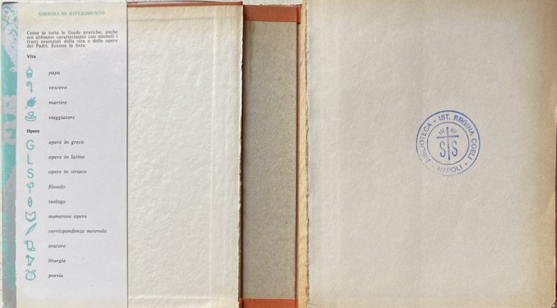 Soggetti: Patrologia, Cristianesimo, Religione, Teologia, Biografie, Agiografie, Patristica, Vita, Opere, Dottrine, Padri, Chiesa Primitiva, Teologi, Scrittori cristiani ecclesiastici antichi, Vescovi, Predicazione, Scritti, Dottrina cristiana, Formazione, Liturgia, Preghiera, Inni, Salmi, Sant'Ambrogio, San Girolamo, Sant'Agostino, IV-V secolo, San Gregorio Magno, VI-VII secolo, Apologisti, Fede, Ebrei, Pagani, Preghiere, Paganesimo, Impero romani, Persecuzioni, Eretici, Eresie, Arianesimo, Ebraismo, Giudaismo, Iniziazione, Testi patristici, Dizionario, Manuali, Collezionismo, Libri rari Vintage fuori catalogo, Rarità librarie, Vie quotidienne, Premiers chrétiens, Liturgie, Apostolato, Pères, Salvezza, Enciclopedie, Africa, Terra Santa, Conversione, Clément d'Alexandrie, Clemente di Alessandria, Lettura, Lettere, Isidoro di Siviglia, Apostoli, Insegnamenti, Gesù Cristo, Giovanni Damasceno, Gerolamo, Comunità, Ariani, Arianesimo, Atanasio, Ignazio d'Antiochia, Giustino, Roma, Ireneo di Lione, Tertulliano, Cipriano, Cartagine, Origene, Atanasio, Ilario, Poitiers, Basilio, Cesarea, Gregorio di Nazianzo, Nissa, Efrem, Cirillo, Gerusalemme, Giovanni Crisostomo, Milano, Ippona, Leone Magno, Cronologia, Iconografia, Mosaici, Alinari, Viollet, Anderson, Giraudon, Boissonnas, Incisioni, Allegorie, Miniature, Medioevo, Testa, Teodosio, Simbolismo, Croce, Ravenna, Battista, Genesi, Levitico, Bibbia, Esegesi biblica, Aquileia, Palermo, Egitto, Manoscritti, Scriba, Costantinopoli, Impero Bizantino, Bisanzio, Oriente, Valente, Basilio, Graziano, Imperatori romani, Re, Filosofia, Discepoli, Ponzio Pilato, Settimio Severo, Treviri, San Pietro, Simon Mago, Traiano, Martirio, Arte antica, Sarcofaghi, Iscrizioni, Apologia, Battistero, Papato, Papa, Damasceno, Tradizione cristiana, Ecclesiastici, Documenti filosofici e teologici, Influenza latina, Novaziano, Peccato, Pelagiani, Trattati, Trinità, Vangelo, Verbo, Vangeli apocrifi, Spirito Santo, Teodosio, Teofilo, Giustino, Gnostici, Grazia, Epistole, Eusebio, Letteratura cristiana, Rufino, Marcione, Commentario, Concilio, Parigi, Seguaci, Le pédagogue, Pedagogo, Pedagogia, Consultazione, Riferimento, Bibliografia, Elenchi, Santi, Canone, Controversie religiose, Monasteri, Monaci, Ordini monastici, Povertà, Spiritualità, Monachesimo, Culto, Riti, Rituali, Teodoro, Gnosticismo, Greco, Maestri, Marco, Maria, Matteo, Luca, Patriarca, Claude Mondésert, André Benoit, Antonio Zani, Irenaeus, Eretici, Confessioni, Henri-Irénée Marrou, Lirismo, Siriaci, Rinnovamento, Louis Marie Olivier Duchesne, Henri-Charles Puech, Pierre Champagne de Labriolle, Gustave Bardy, Johannes Quasten, Karl Barth, Hans von Campenhausen, P. Thomas Camelot, Palestina, Pensiero, Sanscrito, Autenticità, Efesini, Mistica, Misticismo, Ascetismo, Battesimo, Sacramenti, Rivelazione, Numidi, Asia Minore, Eucaristia, Gnosi, Markos, Dottrine gnostiche, Orazioni, Poesie, Corinti, Sicilia, Italia, Discorsi, Inni, Atene, Tarso, Betlemme, Tagaste, Stridone, Siria, Ellenismo, Sermoni, Festa dei Lumi, Catechesi, Catechismo, Santo Sepolcro, Pastori, Neofiti, A. Wenger, Omelie, Città di Dio, Giansenismo, Canti, Canto Nuovo, Parabole, Proverbi, Amore, Gloria, Incarnazione, Antonino Pio, Dialoghi, Natività, Dogmatica, Marcione, Ebrei, Giudei, Giudea, Nestorianesimo, Eunomio, Madrasha, Educazione, Bambini, Sacerdozio, Pastorale, Pastori, Gregge, Cantico dei Cantici, Mosè, Creazione, Bestemmie, Enarrationes, Psalmos, Feste liturgiche, Noè, Abramo, Bonifacio VIII, Dottore, Proclamazione, Beda Venerabile, Pensiero teologico, Benedettini, Trasmissione, Jean Guénolé Marie Daniélou, Jacques Paul Migne, Corpus, Corona Patrum Salesiana, Berthold Altaner, Fulberto Cayrè, Maurini, S. Mauro, Classici, Desclée de Brouwer, Modernismo, Patrology, Christianity, Religion, Theology, Biographies, Hagiographies, Patristics, Life, Works, Doctrines, Fathers, Early Church, Theologians, Ancient ecclesiastical writers, Bishops, Preaching, Writings, Christian doctrine, Formation, Liturgy, Hymns, Psalms, St. Ambrose, St. Jerome, St. Augustine, 4th-5th century, St. Gregory the Great, 6th-7th century, Apologists, Faith, Jews, Pagans, Prayers, Paganism, Roman Empire, Persecutions, Heretics, Heresies, Arianism, Judaism , Initiation, Patristic texts, Dictionary, Manuals, Collecting, Out of print rare books, Book rarities, Apostolate, Salvation, Encyclopaedias, Holy Land, Conversion, Clement of Alexandria, Reading, Letters, Isidore of Seville, Apostles, Teachings, Jesus Christ, John Damascene, Jerome, Community, Arians, Arianism, Athanasius, Ignatius of Antioch, Justin, Rome, Lyons, Tertullian, Cyprian, Carthage, Origen, Athanasius, Hilary, Basil, Caesarea, Gregory of Nazianzus, Nyssa, Ephrem, Cyril, Jerusalem, John Chrysostom, Milan, Hippo, Leo the Great, History, Iconography, Mosaics, Engravings, Allegories, Miniatures, Middle Ages, Head, Theodosius, Symbolism, Cross, Baptist, Genesis, Leviticus, Bible, Biblical exegesis, Egypt, Manuscripts, Scribe, Constantinople, Byzantine Empire, Byzantium, Orient, Valens, Basil, Gratian, Roman emperors, Kings, Philosophy, Disciples, Pontius Pilate, Septimius Severus, Trier, Saint Peter, Simon Magus, Trajan, Martyrdom, Ancient, Sarcophagi, Inscriptions, Apology, Baptistery, Papacy, Pope, Damascene, Christian tradition, Ecclesiastics, Philosophical and theological documents, Latin influence, Novatian, Sin, Pelagians, Treaties, Trinity, Gospel, Word, Apocryphal Gospels, Holy Spirit, Theodosius, Theophilus, Justin, Gnostics, Grace, Epistles, Eusebius, Christian literature, Rufinus, Commentary, Council, Paris, Followers, Pedagogue, Pedagogy, Consultation, Reference, Bibliography, Lists, Saints, Religious controversies, Monasteries, Monks, Monastic orders, Poverty, Spirituality, Monasticism, Cult, Rites, Rituals, Theodore, Gnosticism, Greek, Masters, Mark, Mary, Matthew, Luke, Patriarch, Heretics, Confessions, Lyricism, Syriacs, Renewal, Palestine, Thought, Sanskrit, Authenticity, Ep