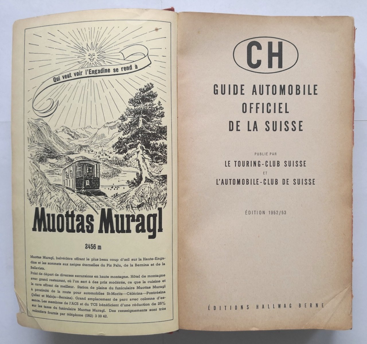 GUIDE AUTOMOBILE OFFICIEL DE LA SUISSE 1952 53 Editions Hallwag Touring Club