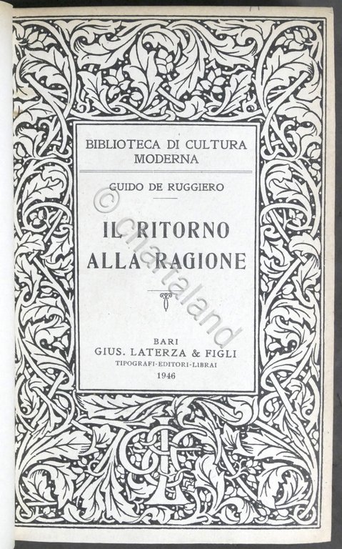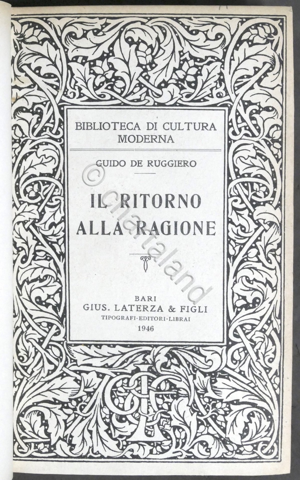Guido De Ruggiero - Il ritorno alla ragione - ed. 1946 Laterza