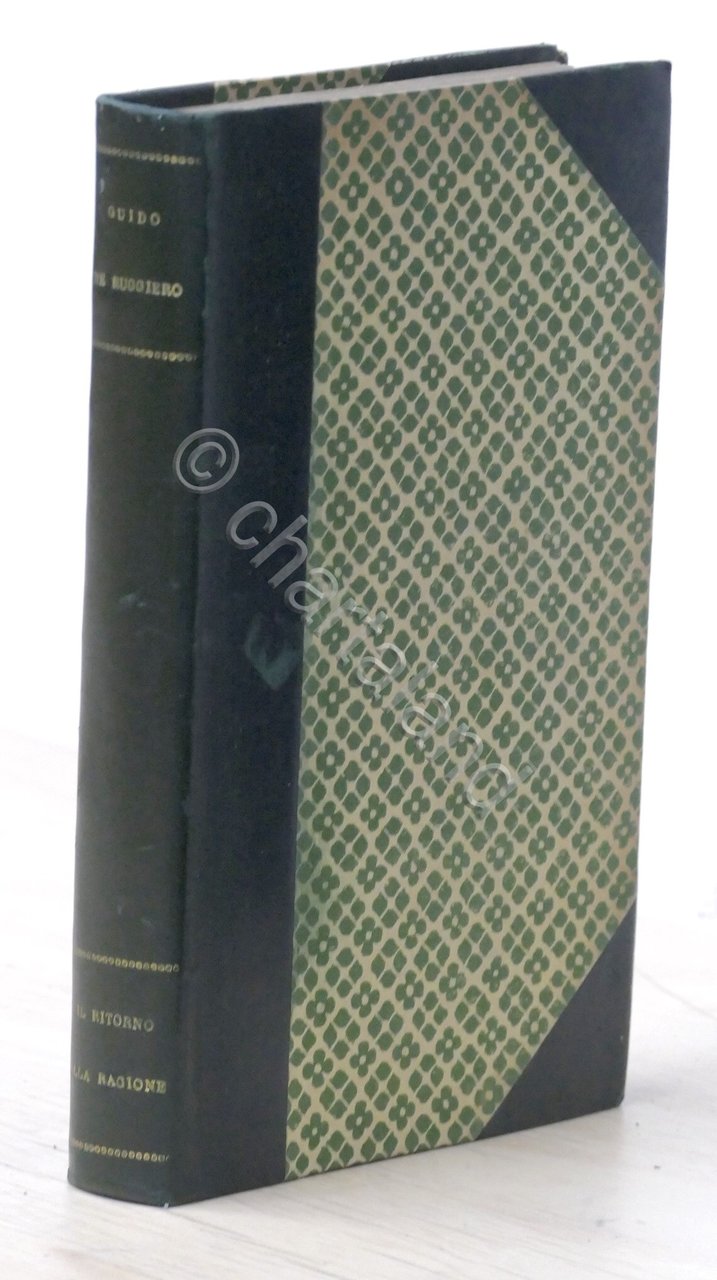 Biblioteca di Cultura Moderna Guido De Ruggiero - Il ritorno alla ragione - ed. 1946 Laterza Pag. VIII, 295 Legatura in mezza pelle - Testo in italiano. Condizioni generali molto buone. Dorso come da foto. Copertina originale in brossura conservata.