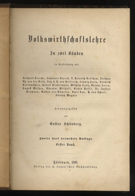 Handbuch der Politischen Oekonomie. Zweite stark vermehrte Auflage. Erster-Zweiter Band: Wolkswirthschaftslehre in zwei bänden. Dritter Band: Finannzwissenschaft und Verwaltungslehre.
