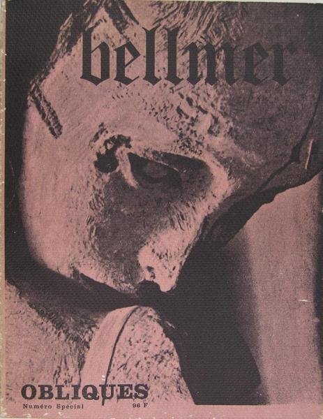 Revue Obliques, 1975. In-4 (27 x 21 cm) broché, couverture illustrée, illustrations en noir et en couleurs, 306 pages., 7 f. n.p. Texte en français et en allemand. petit défaut sur le dos, sans gravité. Catalogue de d'une importante exposition consacrée à Hans Bellmer (1902-1975), l'un des artistes majeurs du mouvement surréaliste. Artiste français d'origine allemande, Hans Bellmer a créé l'objet surréaliste par excellence, la Poupée (1934). Avec plus de 250 oeuvres (sculptures-objets, photographies, peintures et surtout dessins), cette exposition est centrée sur le concept de l'anatomie du désir qui est au coeur de la singulière création de l'artiste. Une oeuvre violente et subversive, à l'écriture digne des grands dessinateurs maniéristes. Textes de Michel BUTOR, Paul ELUARD, Nora MITRANI, Jean-Michel GARDAIR, René de SOLIER, Heinrich von KLEIST.