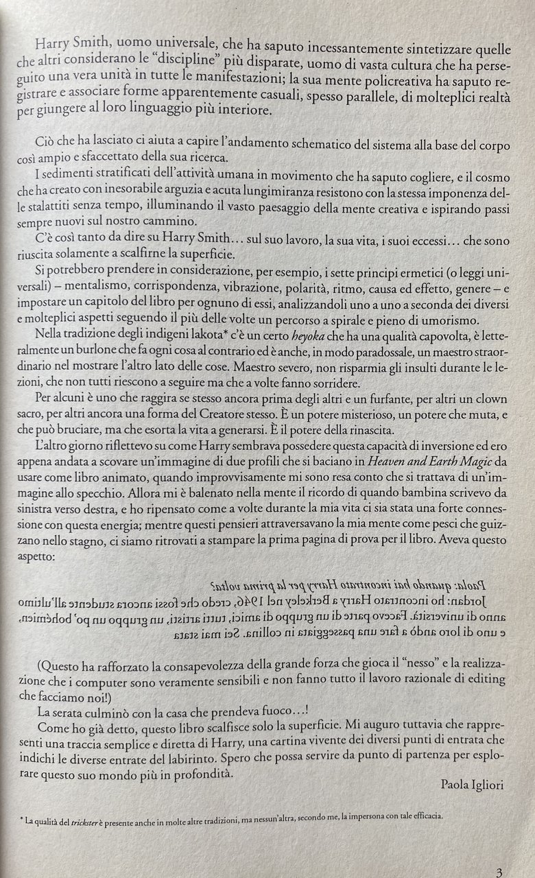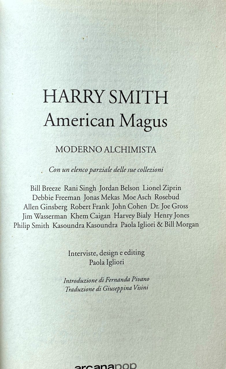 Cinque anni dopo la morte di Smith, la poetessa Paola Igliori iniziò a condurre interviste intime con i registi, i musicisti, i poeti e gli artisti che lo conoscevano meglio. Il risultato, American Magus Harry Smith , offre uno sguardo privilegiato non solo sulla vita e la pratica artistica di Smith, ma anche sulla sua epoca e sull'economia informale di influenza che operava in quel periodo. Fornisce una visione inestimabile della mente di uno degli studiosi più enigmatici del ventesimo secolo. Questa edizione ampliata include foto di Smith e molte altre immagini a colori.