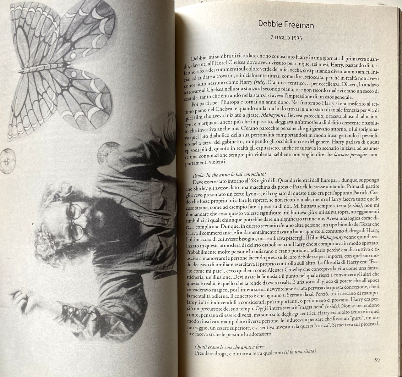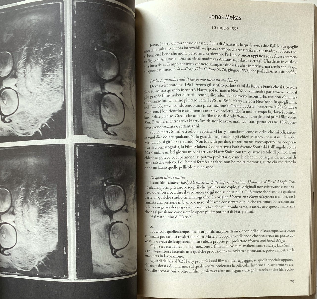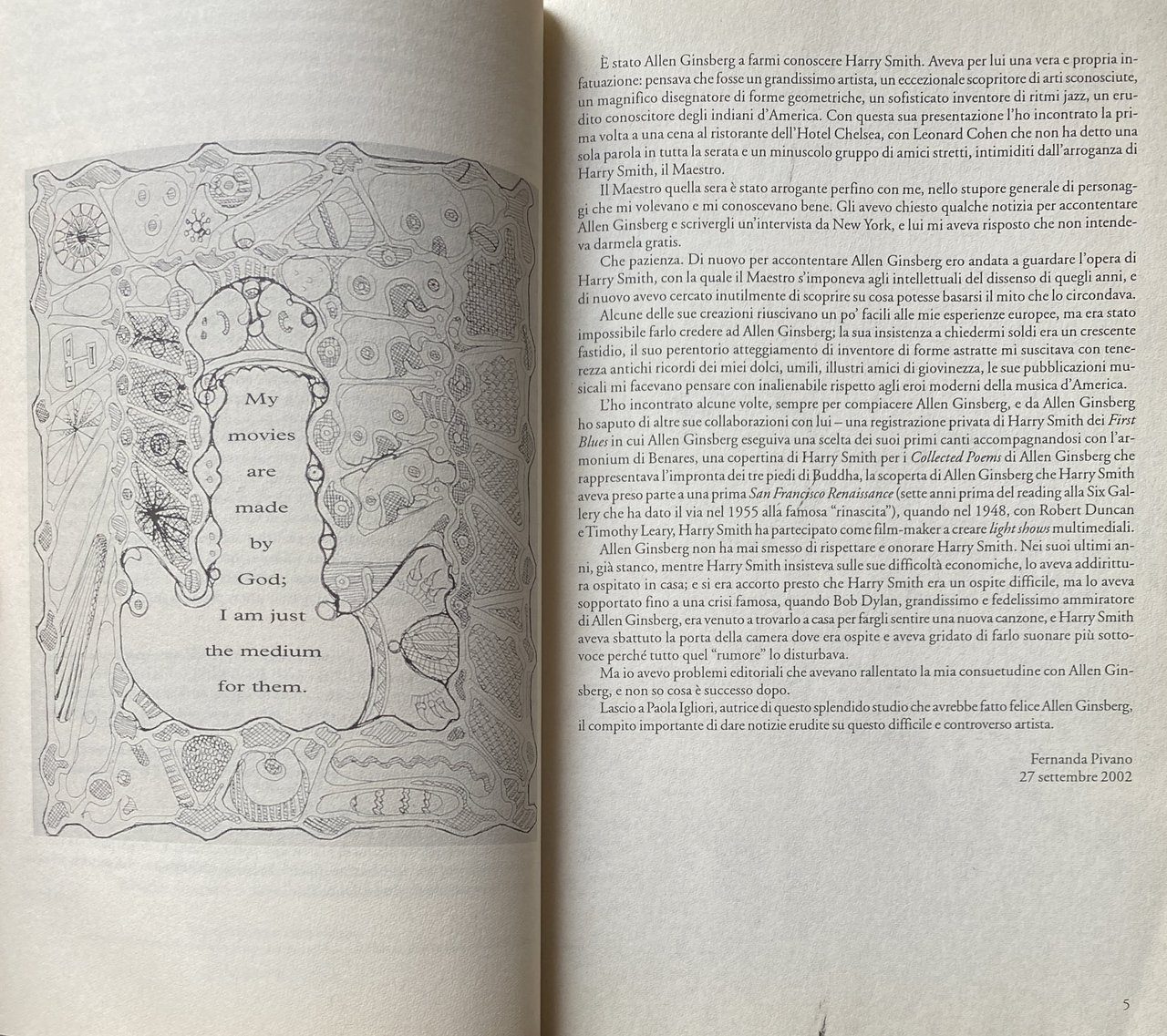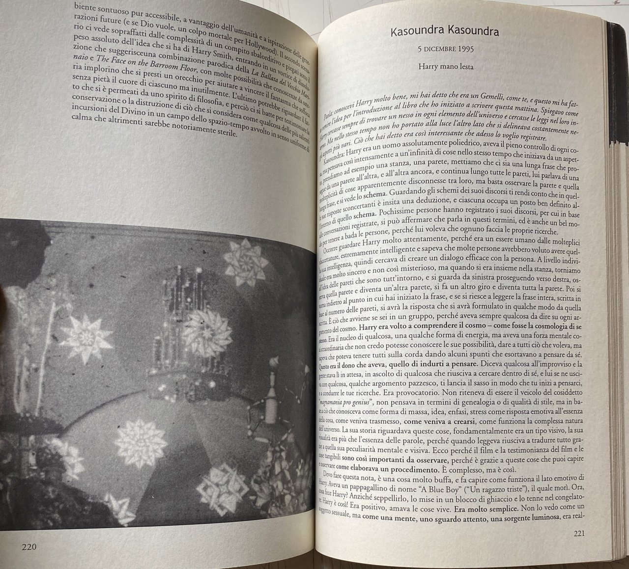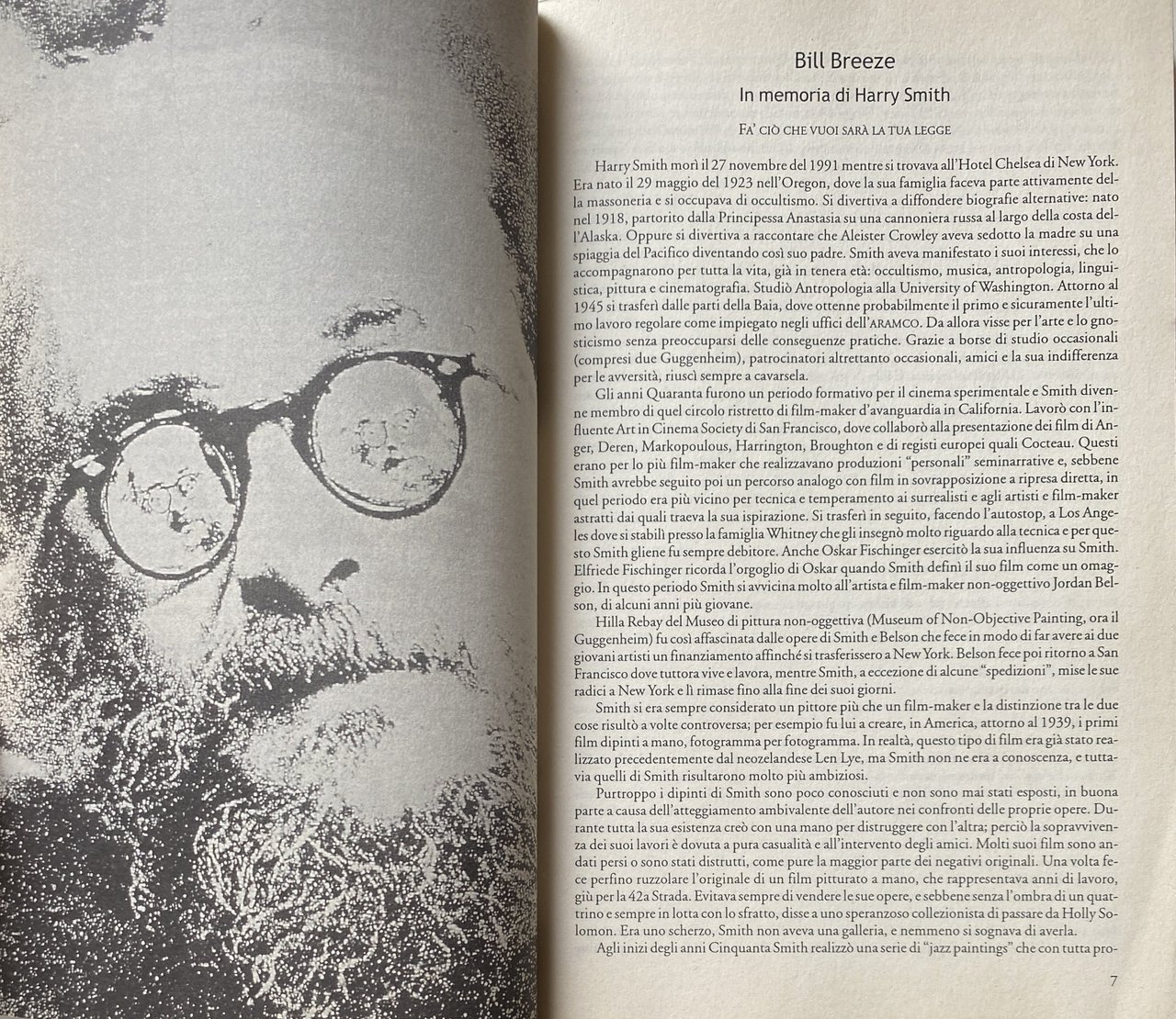 Cineasta, pittore, occultista, antropologo, etnomusicologo, cultore di droghe, collezionista di oggetti insoliti (tra cui uova di Pasqua ucraine, figure di corda, aeroplanini di carta), Harry Smith è stato definito dal suo amico Allen Ginsberg: il Leonardo da Vinci del XX secolo. Collaboratore di geniali musicisti come Thelonius Monk, Dizzy Gillespie e Charlie Parker, nel 1952 realizzò l'Anthology of American Folk Music, una raccolta di 6 dischi con cui influenzò le generazioni musicali a venire, tanto che Bob Dylan ha detto: Senza Harry Smith non sarei mai esistito!. Le innovazioni di Harry nel cinema sono straordinarie: dai primi film, in cui dipingeva direttamente sulla pellicola, alle light projections e le animazioni, fino alle tecniche di collage e cut up. Il suo capolavoro è Heaven and Earth Magic, una storia dell'esoterismo ricca di humor. Come dice dj Spooky, Harry è il padre della multimedialità per la sua attitudine a sperimentare diversi linguaggi espressivi. Paola Igliori è poetessa, scrittrice, fotografa, saggista ed editrice. È diventata residente a New York City dagli anni '80. Mentre era a New York, scrisse il suo primo libro, Entrails, Heads e Tails, che conteneva saggi fotografici e conversazioni con artisti come Louise Bourgeois, James Turrell, Enzo Cucchi, Vito Acconci, Cy Twombly, Gilbert & George, Francesco Clemente, Sigmar Polke, Julian Schnabel, Wolfgang Laib e altri, pubblicato da Rizzoli nel 1991. Il libro è stato descritto da alcuni critici un'esplorazione della creatività attraverso la vita quotidiana. Nel 1996, ha curato e pubblicato American Magus: A Modern Alchemist, un libro di allora, in gran parte sconosciuto (sebbene ben noto tra gli artisti, dagli anni '50) artista americano, pittore, poeta, regista, saggista e collezionista Harry Everett Smith. Igliori aveva sviluppato un forte rapporto personale con Smith, che, secondo alcuni, morì nel 1992 tra le sue braccia “cantando mentre si allontanava, all''Hotel Chelsea. Nel 2001, ha scritto e diretto un documentario su Smith, intitolato American Magus.