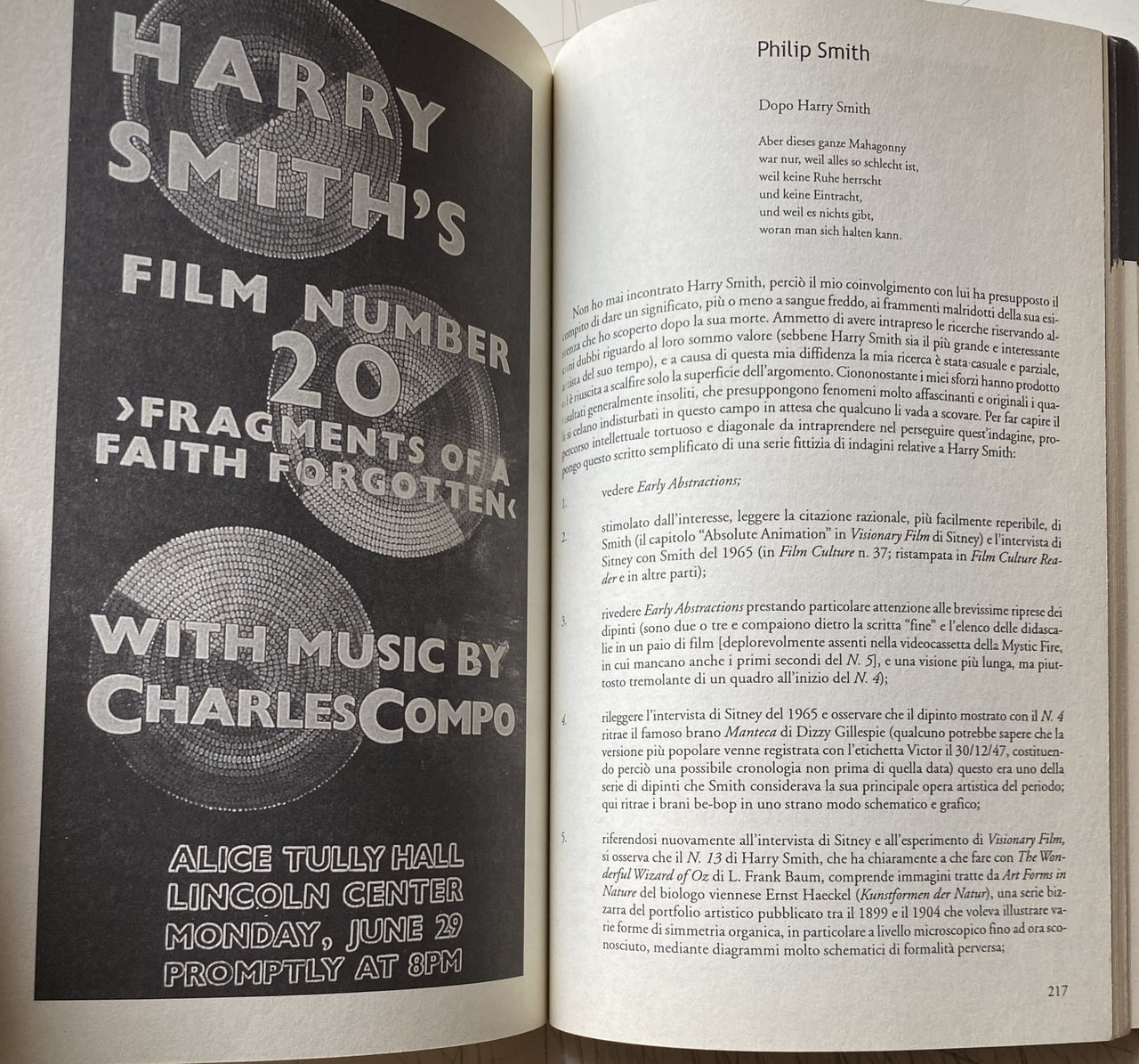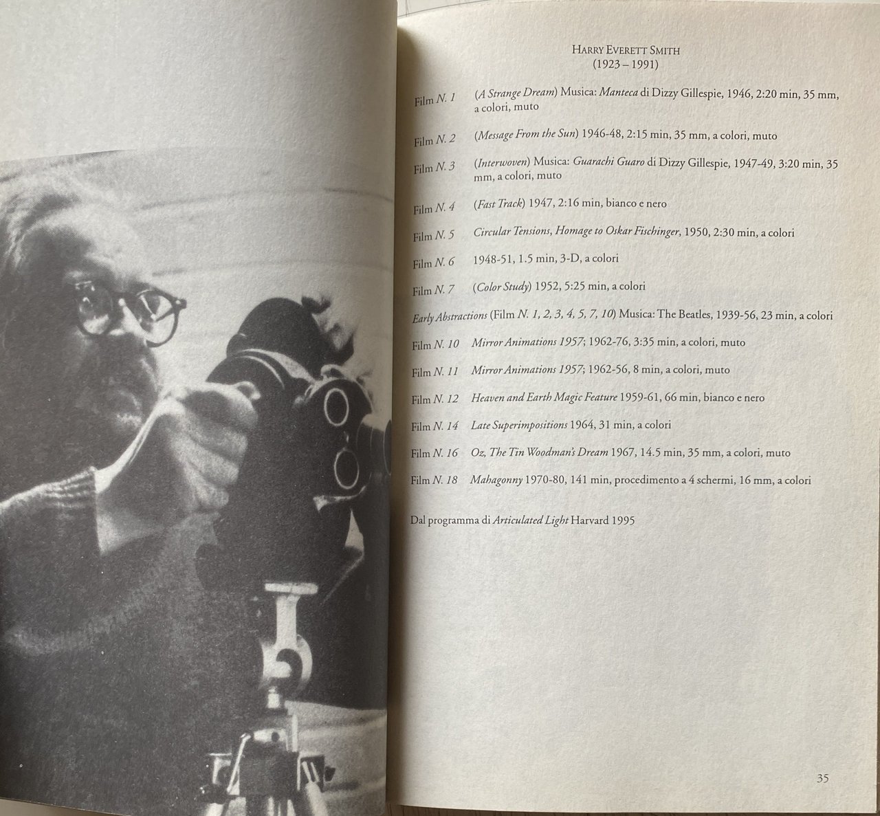 Testo e opere di Harry Smith, Estratto dall'intervista di William Moritz con Harry Smith e profilo biografico di Jordan Belson per concessione di William Moritz, Intervista di John Cohen con Harry Smith, L'arte dell'alchimia, La musica folk americana di Harry Smith, La nascita e l'evoluzione, Estratti da Anthology of American, Folk Music Folkways Records, Estratti dal Raduno peyote dei kiowa, Estratto dal catalogo della Film-Maker 's Cooperative, Anthology Film Archives