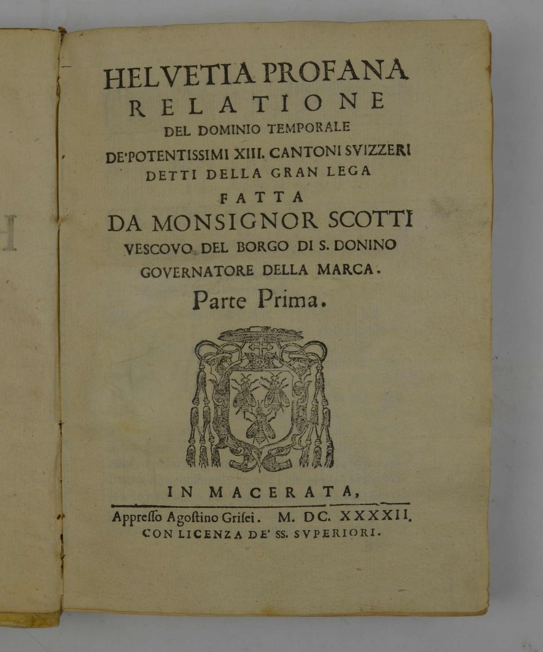 Helvetia profana. Relatione del dominio temporale de' potentissimi XIII. cantoni svizzeri detti della Gran Lega… Parte prima (e seconda).
