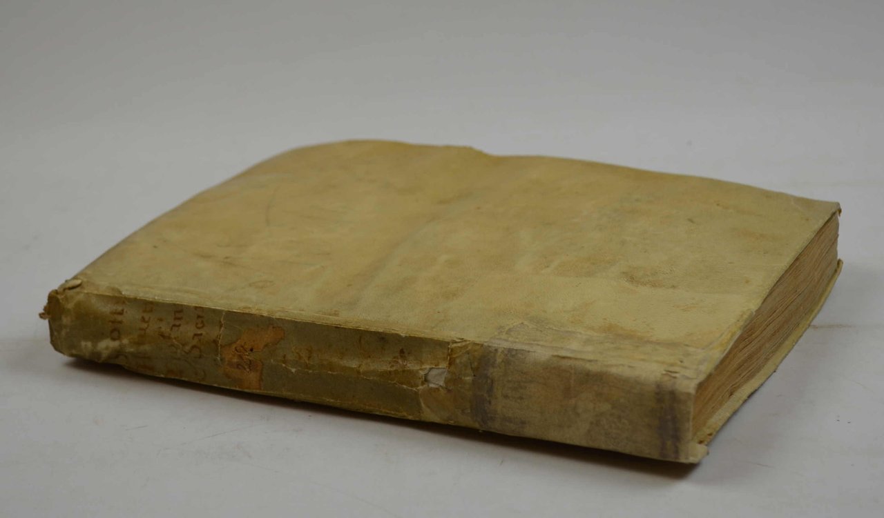 Due parti in un volume di cm. 21, pp. (12) 85 (3); 140 + (2) d'errata. Stemma vescovile ai due frontespizi, capolettera e decorazioni tipografiche nel testo. Legatura coeva in piena pergamena semirigida con titoli manoscritti al dorso. Solo qualche leggera brunitura, peraltro esemplare genuino, marginoso e ben conservato. Edizione originale ed unica di un'opera assai interessante e non comune.