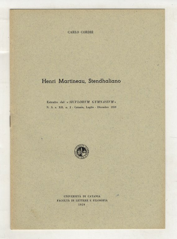 Catania, Università di Catania, 1959, in-8, br. editoriale, pp. numerate da 185 a 192.