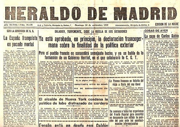 HERALDO DE MADRID. AÑO XLVIII. N. 16476. 20-NOVIEMBRE-1938.