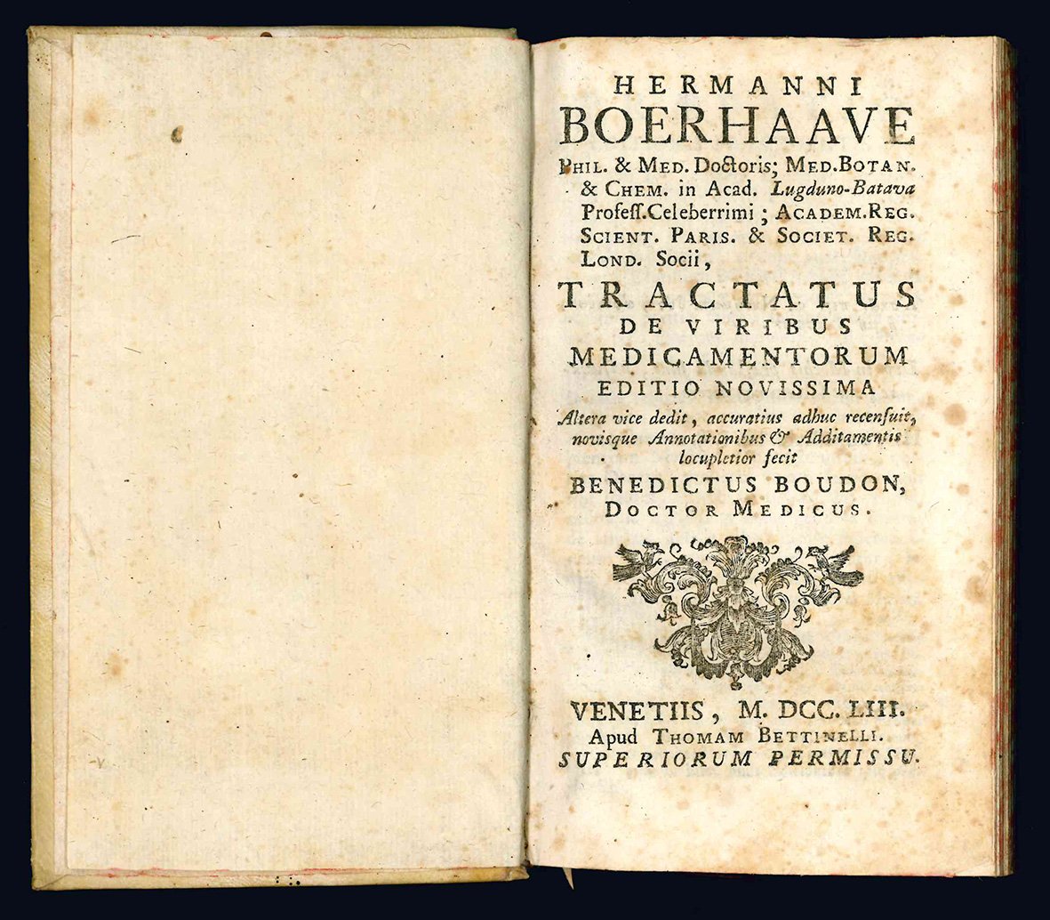 Hermanni Boerhaave ... Tractatus de viribus medicamentorum. Editio novissima. Altera vice dedit, accuratius adhuc recensuit, novisque Annotationibus & Additamentis locupletior fecit Benedictus Boudon, doctor medicus.