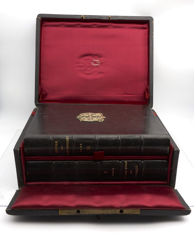 Léon Curmer | 1866-1867 | 23.50 x 29 cm | 2 volumes reliés et coffret éditeur | [ENGLISH DESCRIPTION ON DEMAND] | Edition originale de la reconstitution des Heures de Maistre Estienne Chevalier par l'abbé Delaunay et Léon Curmer, enrichie d'une étude de l'œuvre du célèbre enlumineur du XVe siècle, Jean Foucquet ; imprimée à 550 exemplaires et richement ornée de nombreuses chromolithographies à pleine page réhaussées d'or et d'argent, de gravures sur acier et d'encadrements chromolithographiques. Elle fut publiée en livraisons avec 550 souscripteurs et réalisée avec le plus grand soin grâce au travail des artistes graveurs et des dernières technologies d'impression. L'intensité des couleurs et la finesse du trait rend honneur à l'art de Jean Foucquet. Cette édition illustre particulièrement le goût du XIXe pour le Moyen âge. Cependant cela ne correspond pas à une édition fidèle au manuscrit d'origine. Les éditeurs ont pris la liberté de remplacer les textes et de les enrichir d'enluminures d'époques et de styles divers sans respecter le contexte de production du manuscrit. Bel exemplaire conservé dans le rarissime coffret éditeur et bien complet des feuillets et des planches tous montés sur onglets ; en très bel état malgré des rousseurs éparses. Deux volumes en plein maroquin noir, dos à 5 nerfs avec titre, tomaison dorés et nom de l'éditeur « L. Curmer », premier plat orné d'un chiffre « M mêlé d'une croix(?) » orné de rinceaux et ciselé en argent dans un style gothique, double filet doré sur les coupes, tranches dorées, contreplats orné d'un encadrement composé de deux roulettes et de filets dorés, gardes de papier vert avec des motifs floraux dorés. Les volumes sont conservés dans un étui rigide en chagrin noir, double filet et filet d'encadrement avec petits fers en coins estampés à froid sur le plat, serrure en étain et clef conservée, intérieur recouvert de satin de soie rouge matelassée, tampon de l'éditeur à l'or à l'intérieur « Librairie, L. Curmer, r. Richelieu, 47 », coussin dans le même satin rouge entre les deux volumes ; petites indentations et frottements sur les plats des reliures, traces de restauration sur l'étui, garde volante supérieure fendue de moitié dans la longueur. (Reliure dans le style de Charles Capé) Le manuscrit modèle, Les Heures d'Étienne Chevalier, est illustré des miniatures peintes par Jean Fouquet entre 1452 et 1460. Ces enluminures incarnent l'apogée de l'art de l'enlumineur et une des merveilles de l'art occidental. Le manuscrit est composé de textes en latin calligraphiés dans une hybrida textualis sur 16 lignes et orné de magnifiques miniatures pleine-page, de bandeaux marginaux composés de rinceaux fleuris avec les initiales du commanditaire et de lettrines peintes. Conservé deux siècles dans la famille d'Étienne Chevalier, le manuscrit fut démembré et ses feuillets dispersés au XVIIe siècle. Le dernier à l'avoir probablement observé complet fut l'érudit François Roger de Gaignière à la fin du XVIIe et dès 1731, le moine mauriste et philologue, Bernard de Montfaucon, déclara le manuscrit disparu. 40 miniatures resurgirent ensuite à la fin du XVIIIe découpées et montées en tableaux. Au moment de la réalisation de l'édition de Curmer en 1866, les feuillets conservés étaient en partie dans la collection de M. Feuillet de Conches, dans le musée Rogers à Londres et les 40 miniatures en possession d'un banquier allemand, Georg Brentano (qui furent ensuite vendues au duc d'Aumale qui les légua à l'Institut de France). Les feuillets identifiés sont aujourd'hui conservés au château de Chantilly, au Louvre, à la BnF, au British Museum et aux Etats-Unis. C'est donc dans ce contexte qu'il faut imaginer la folle entreprise de restitution éditoriale de l'abbé Delaunay et de Léon Curmer. Les éditeurs n'avaient donc plus que des fragments avec les miniatures et les connaissances entourant les manuscrits médiévaux n'étaient pas celles d'aujourd'hui. Le XIXe sciècle n'est pas non plus connu pour ses