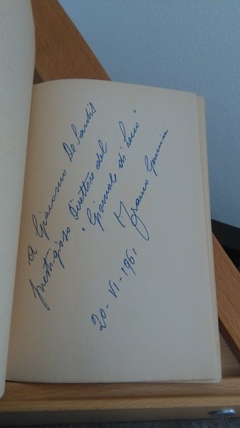 Prima edizione. Brossura in buono stato, leggere fioriture. Legatura stabile. Dedica autografa dell'autore al fu direttore del giornale di Lecco, Giacomo de Santis.
