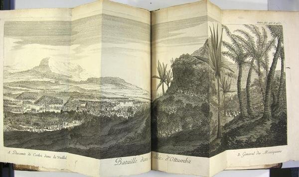 A Paris, chez Estienne Michallet, 1691. In-4 (25 x 20 cm) reliure plein veau mouchetée, dos à nerfs à caissons dorés, roulette sur les coupes, tranches mouchetées, 15 p. n.p., frontispice, 630 p., 17 f. n.p., bandeaux, lettrines historiées et culs de lampes, 13 planches - la plupart dépliantes - dont 2 cartes (une en frontispice). Ancienne restauration de la reliure sur les coins et une partie des mors. Mors supérieur partiellement ouvert mais solide. 4vo full calf binding, ribbed spine with gilt in compartments, gilt board edges, [15], engraved frontispiece (map), 12 plates (most of them folding), 630 p., [17]. Old & expert repair on binding corners. Upper joint parlty split but holding firm. Biblio : Bibliotheca Americana (1867) 1419 & supplément Bibliotheca Americana 3535 pour une édition postérieure de 1730 chez la compagnie des libraires.Le Niceron dans ses "Mémoires pour servir à l'histoire des Hommes illustres." cite la présente édition et qualifie celle-ci d'excellente. Solis, né en 1610, débuta sa carrière littéraire en écrivant des comédies ; il renonça à toute poésie profane lorsqu'il fut nommé prêtre à 57 ans. Par ailleurs, le roi Philippe IV le nomma grand historiographe des Indes en 1661. Il mourru en 1686. Dans le présent ouvrage, le bibliographe précise également que Solis fit l'éloge de Cortez, mais que le traducteur M. de la Gette de Citri non tenu au mêmes égards que l'auteur, requalifia les exactions du conquistador dans sa préface.