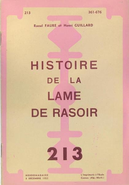 Imprimerie à l’Ecole, Cannes, 1952. Plaquette in/8 brochée, illustrations, 24 pages. Revue hebdomadaire s’adressant à un public jeune, bien documentée. Brochure éditée avec la collaboration de la Société Gillette qui a fourni la documentation technique et photographique.