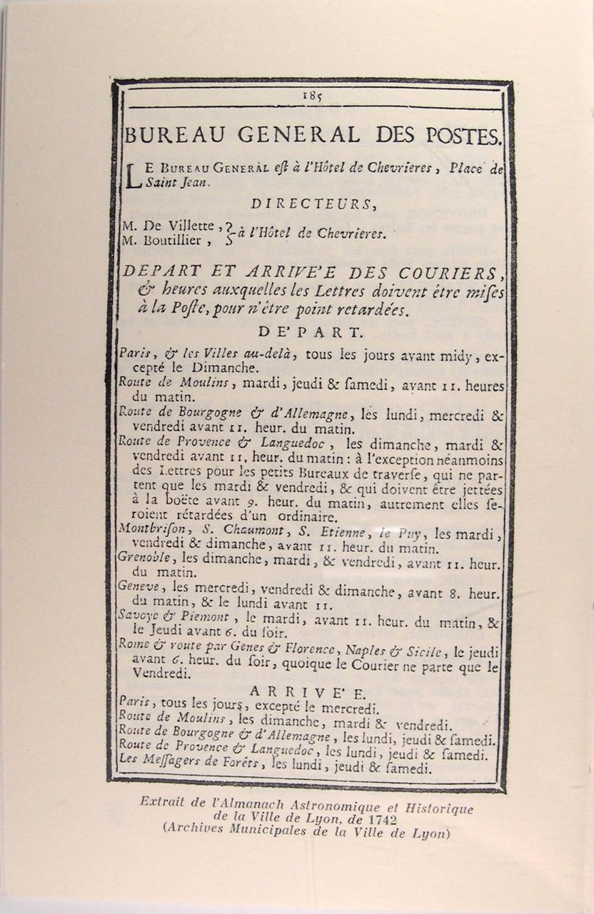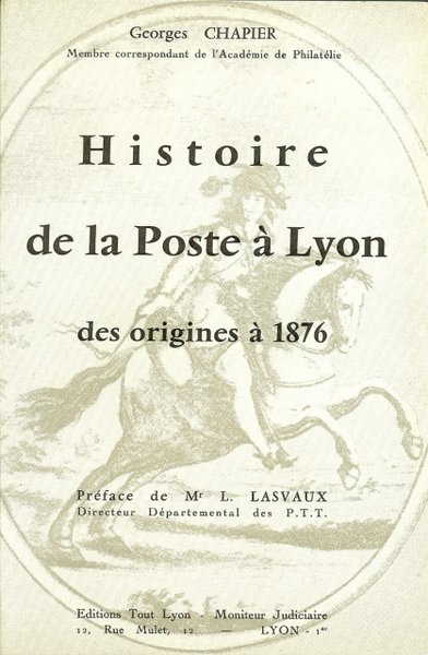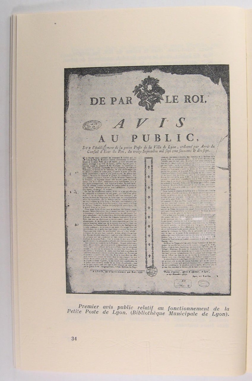 Editions Tout Lyon, Moniteur Judiciaire, Lyon, 1965. In/8 broché, couverture illustrée, 95 pages, 15 illustrations : lettre de 1669, lettre de la Petite Poste, boîte aux lettres du 18ème siècle.