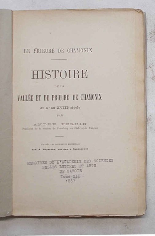 Histoire de la vallée et du prieuré de Chamonix du Xe au XVIIIe siècle