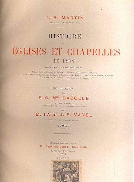 Histoire des Eglises et Chapelles de Lyon. Introduction par Dadolle e Vanel.