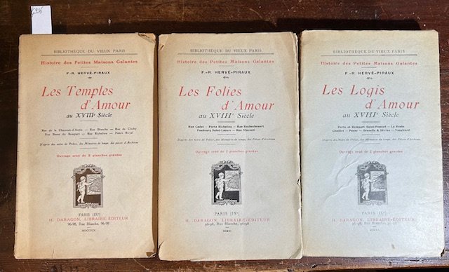 Tre volumi in-8°, pp.166, 2 tavole f.t. incise; 200, 2 tavole incise f.t;, 174, 2 tavole incise f.t.; brossure ediriali con titoli impressi in rosso e nero ai paitti anteriori. Serie Bibliothèque du Vieux Paris. Lievi difetti alle brossure ma nel complesso buona conservazione