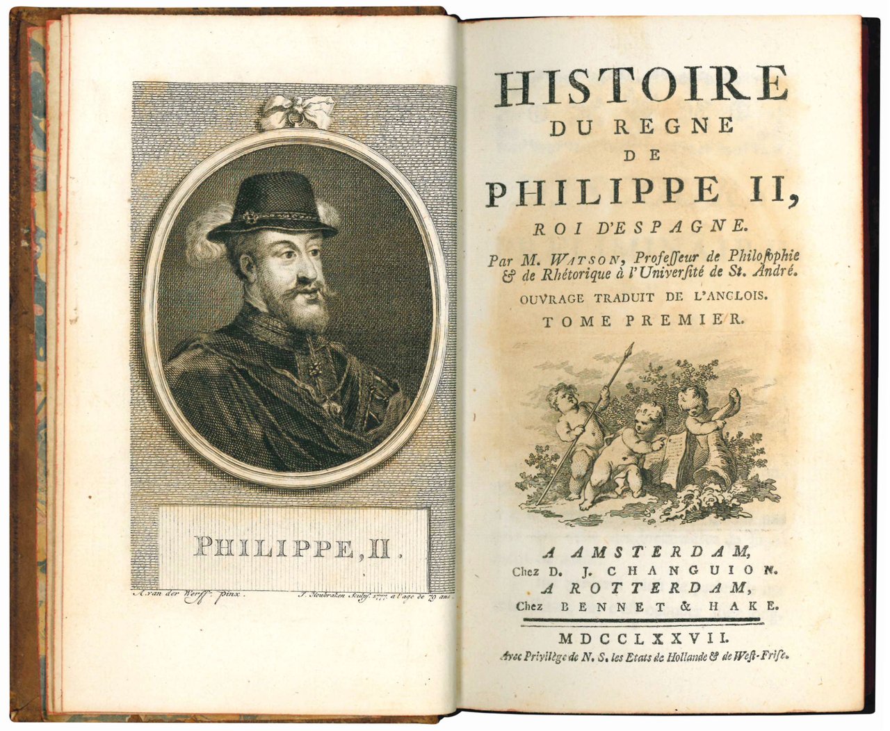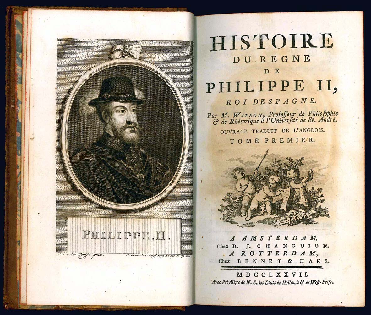Histoire du regne de Philippe II, roi d'Espagne. Par M. Watson, Professeur de Philophie & de Rhétorique à l'Université de St. André. Ouvrage traduit de l'Anglois. Tome premier [-quatrieme].