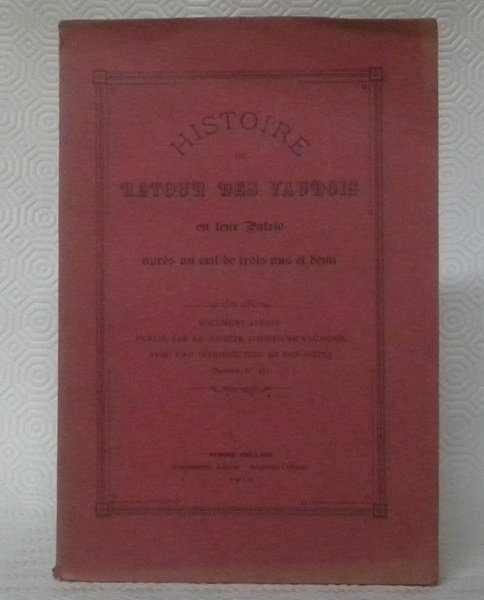 Histoire du retour des Vaudois en leur Patrie après un exil de trois et demi. Document inédit publié par Société d’Histoire Vaudoise avec une introduction et des notes.