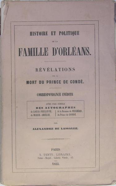 Histoire et politique de la Famille d’Orléans. Révélations sur la mort du Prince de Condé