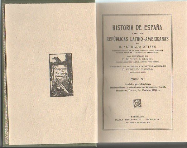 HISTORIA DE ESPAÑA Y DE LAS REPUBLICAS LATINO-AMERICANAS. TOMO XI. AMERICA PRECOLOMBINA. DESCUBRIDORES Y COLONIZADORES. VENEZUELA, BRASIL, HONDURAS, DARIEN, LA FLORIDA, MEJICO.