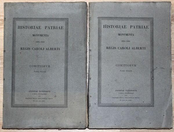 Due volumi in folio (cm. 45 x 31), pp. XV, (1), 1416 colonne; XXVII, (1), 2024, 456 colonne. Brossura editoriale con titolo in cornice ornamentale. Qualche minimo segno del tempo alle copertine. Copia in buono stato, a grandi margini. Tomo XIV (Pars prior): Congregazioni generali (1414-1534). - Congregazioni provinciali: I. Paese di Vaud. II. Savoia. III. Val d'Aosta. IV. Piemonte. V. Monferrato. VI. Marchesato di Saluzzo. VII. Contea di Nizza. Tomo XV (Pars altera): I. SCLOPIS, Federigo. Considerazioni storiche intorno alle assemblee rappresentative del Piemonte e della Savoia. II. TILLIER, Giambattista. Le Assemblee dei tre stati nella Valle d'Aosta. III. Serie cronologica delle assemblee rappresentative. IV. Appunti per una bibliografia delle antiche assemblee rappresentative.