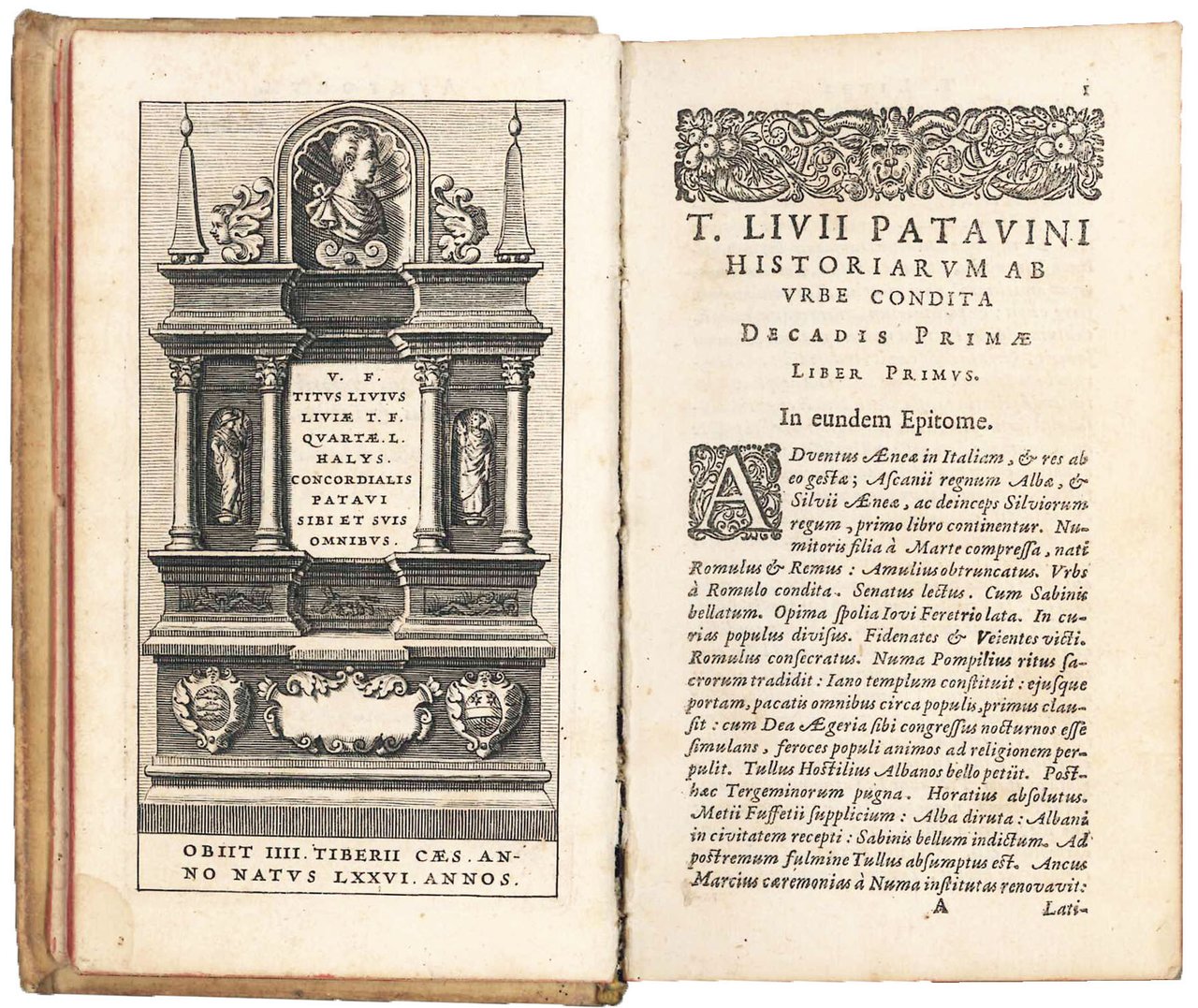 Prima edizione elzeviriana della Storia di Roma di Tito Livio nella versione filologica e con il commento di Daniel Heinsius. “Les Elzevier ont donné trois éditions de Tite-Live. L'édition de 1634 est celle que les amateurs préfèrent, parce qu'elle est la mieux imprimée” (Willems, 405). Questa edizione stampata da Bonaventure e Abraham Elzevier risulta “mieux imprimée que les deux suivantes et elle est d'une justification et d'un format plus petit” (Bérard, Essai bibliographique sur les Editions des Elzevirs, p. 66).