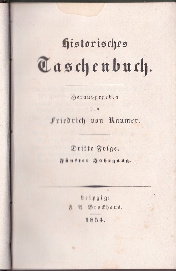 Historisches Taschenbuch. Dritte (3.) Folge. Fünfter (5.) Jahrgang.